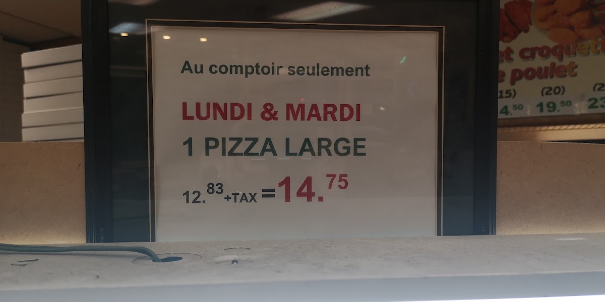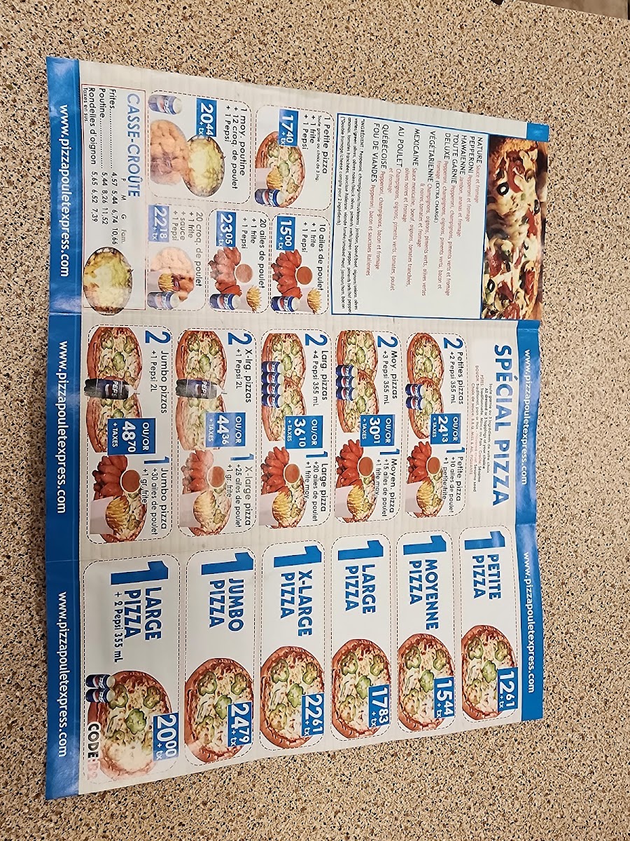 - Family Specials: Designed for group meals, these options include extra-large pizzas with various toppings or all-dressed, paired with sides like small fries, chicken nuggets or poutine, and larger-sized drinks. These selections provide a mix of pizza and chicken to cater to multiple preferences.
